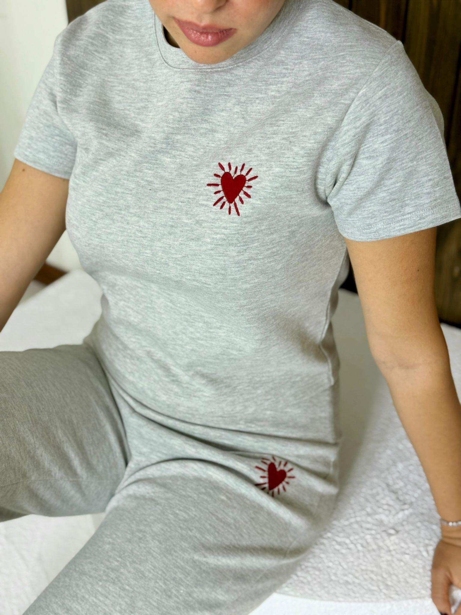 İki İplik Penye Kumaş Nakış Detaylı Premium Takım Gri