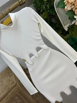 Kaşkorse KumaşLikralı Fermuarsız Taş Detay Bluz Beyaz Etekli İkili Takımımız