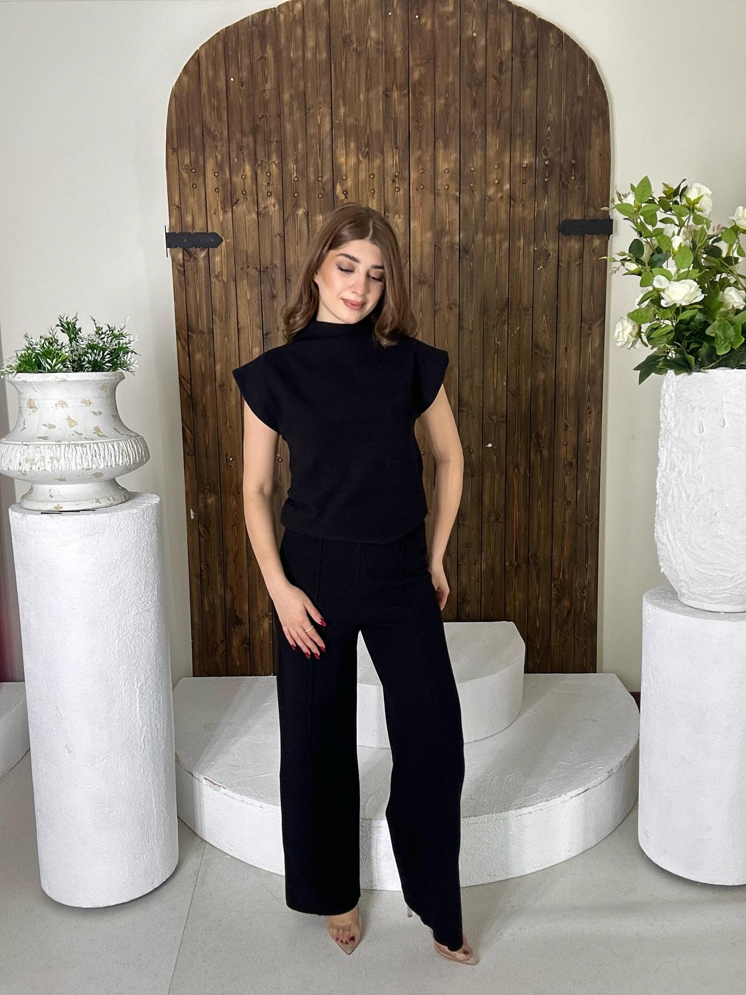 Premium Seri Vatkalı Triko İkili Takım Siyah